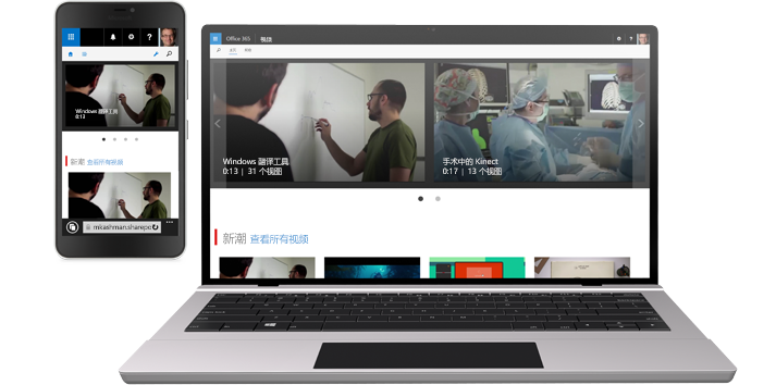 轻松从现代化、直观的视频中心内发现视频。Microsoft 365 视频让员工可以在其各种设备上查找、发现并查看公司内的重要主题和创意 - 随时把握最新动向、保持协调一致。